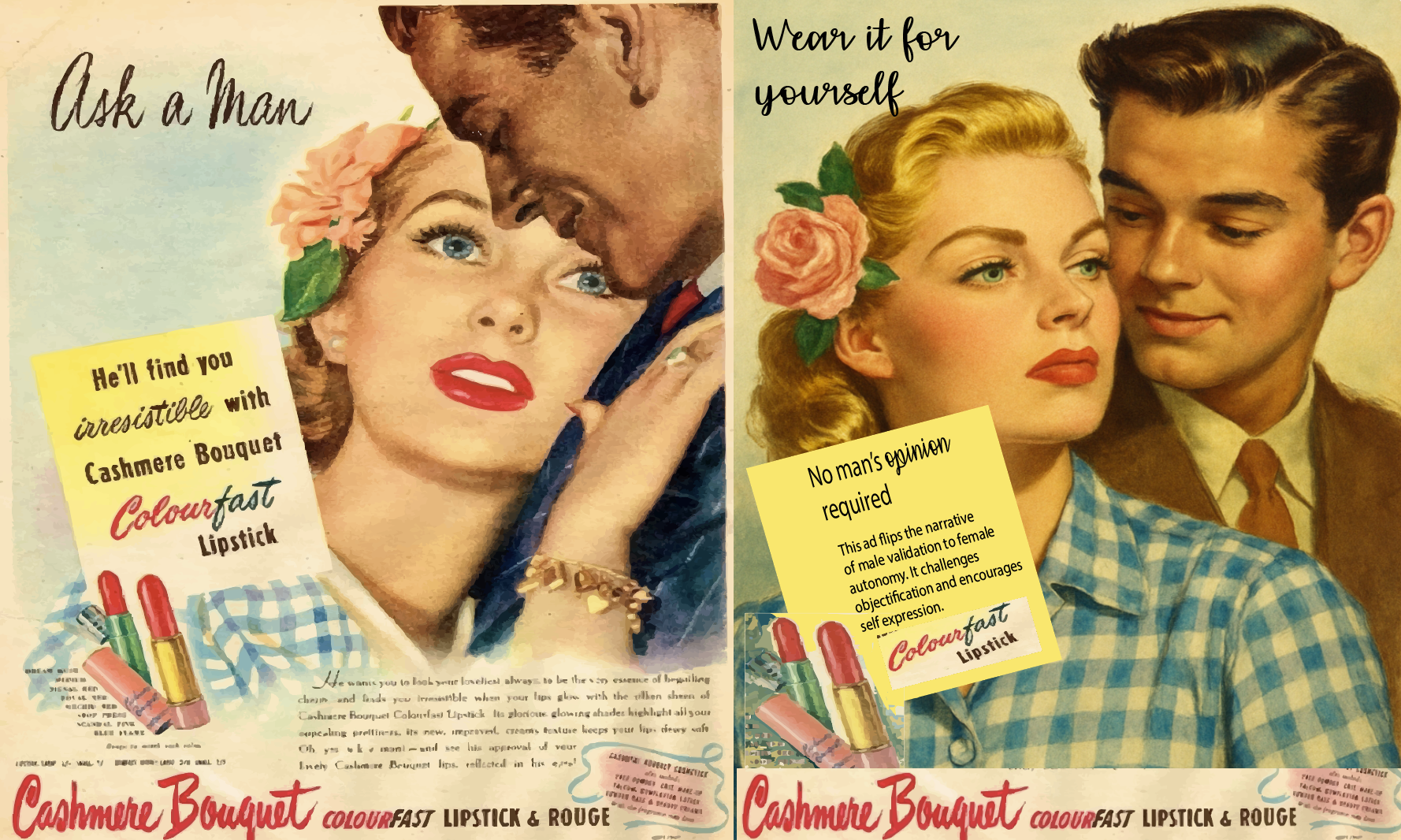 Once shaped by gender-biased messaging and female objectification, these vintage ads were redesigned to center women’s empowerment and reflect a more modern, equitable perspective.