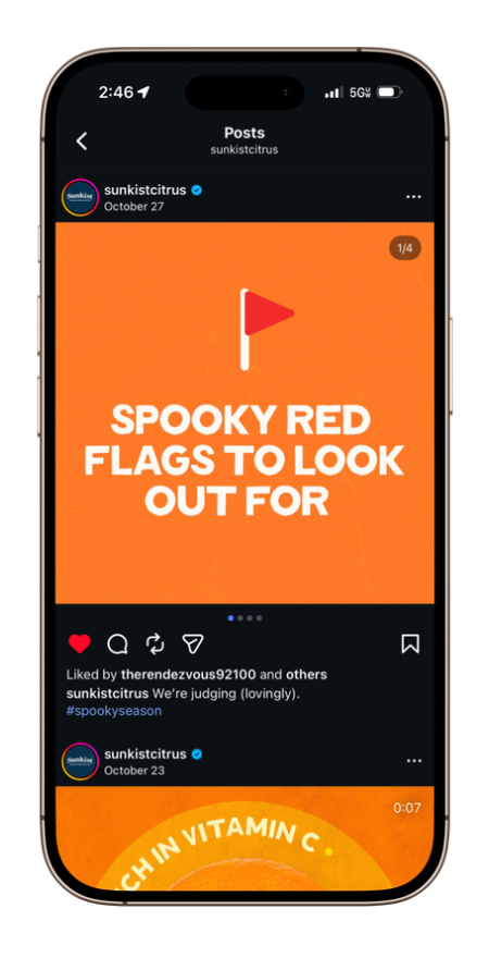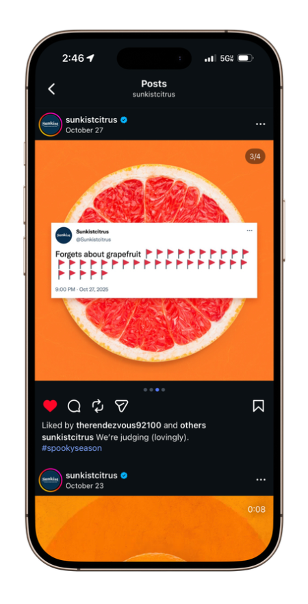 Sunkist wanted to squeeze a little more zest into their socials, so I used my Gen Z brainpower to craft concepts that actually hit the feed right. The work focuses on creating visuals that are bold, clear, and attention-grabbing while still staying true to the brand.